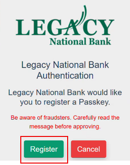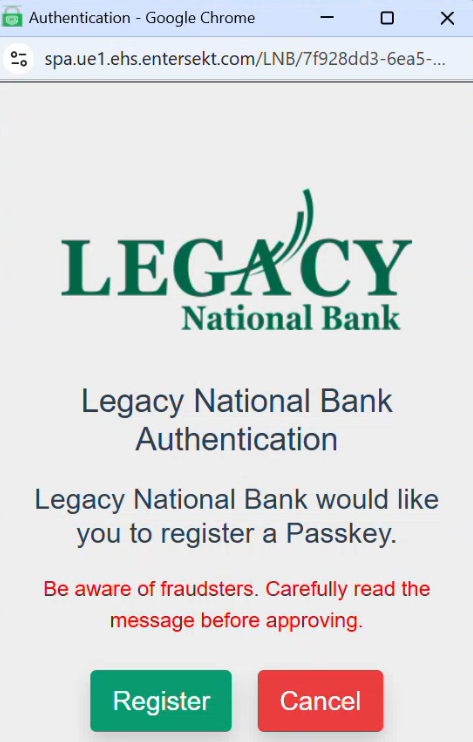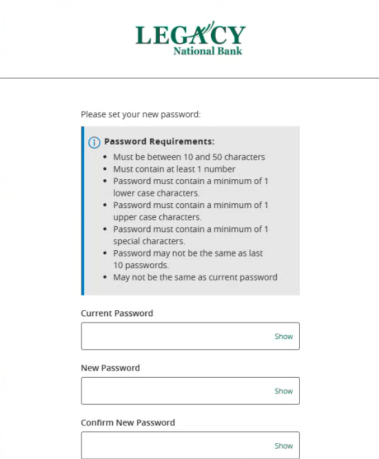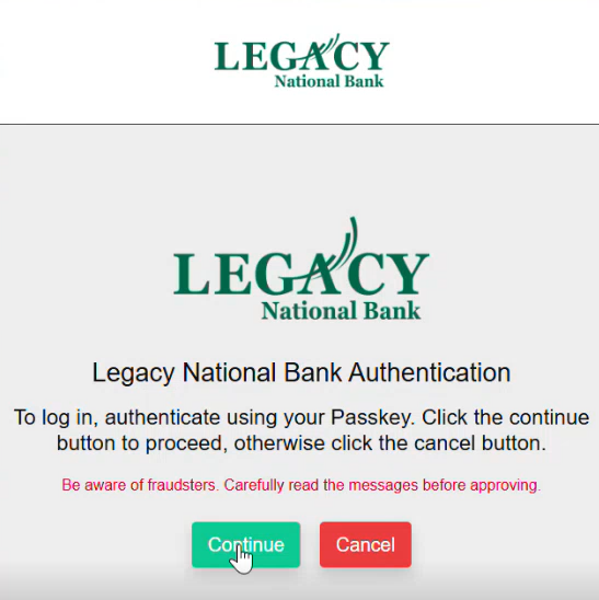 Legacy Bank’s privacy policy and security practices do not apply to the site you are about to enter, please review the third-party's privacy and security practices.