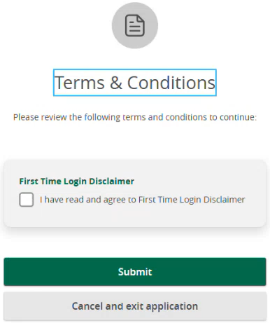 10. Once you successfully set your new password, a “Terms & Conditions” screen will pop up.