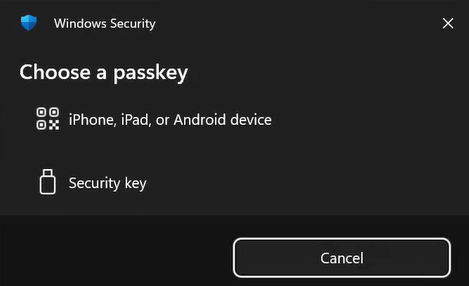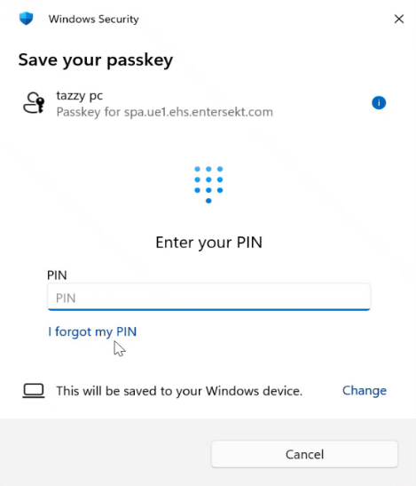 13. You will need to complete the passkey process, whether that be entering a pin, using a token/dongle, your mobile phone, or an automated process that was completed when you logged into your computer. Below are 3 pictures outlining different passkey screens/processes you might see.