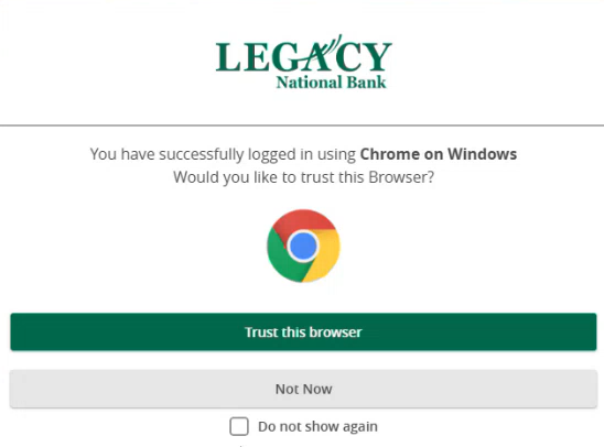 14. After completing the passkey process, the next screen will ask you if you want to trust this browser.